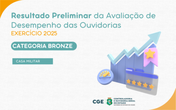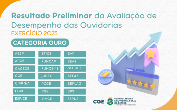 A Agência Reguladora do Estado do Ceará (Arce) alcançou a categoria Ouro no resultado preliminar da Avaliação de Desempenho das Ouvidorias Setoriais referente ao exercício de 2025, divulgado nesta terça-feira (24) pela Controladoria e Ouvidoria Geral do Estado (CGE).